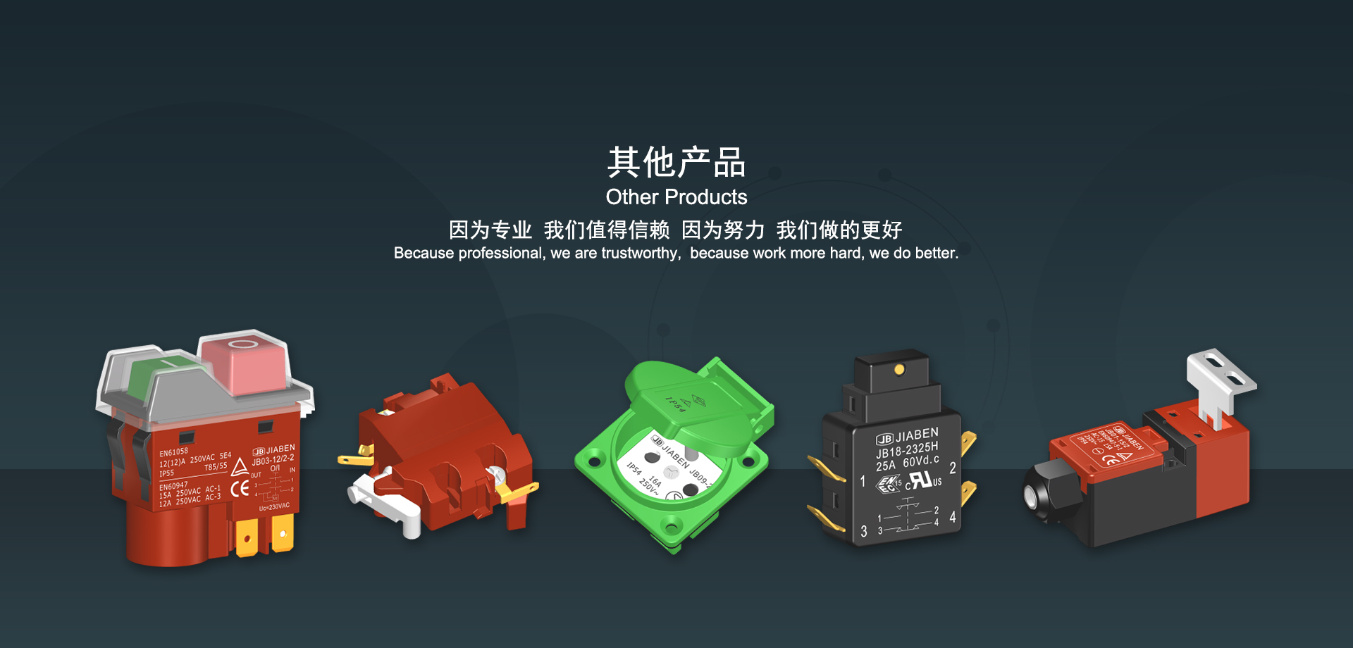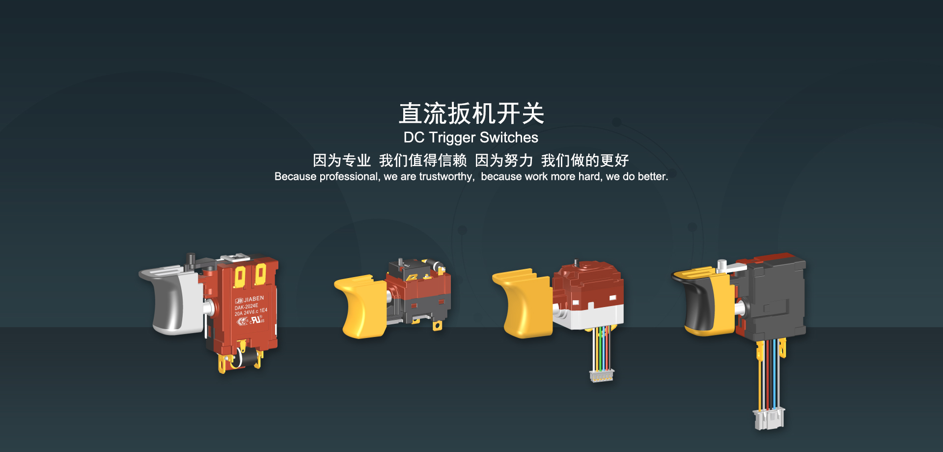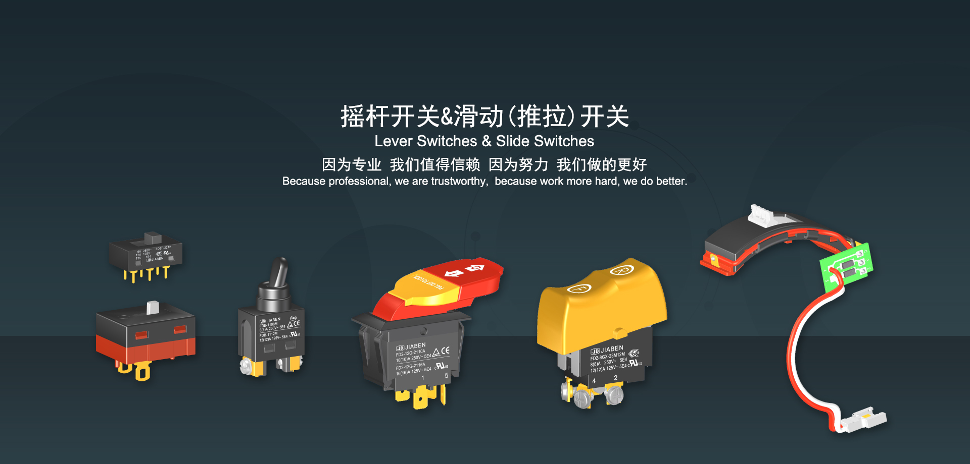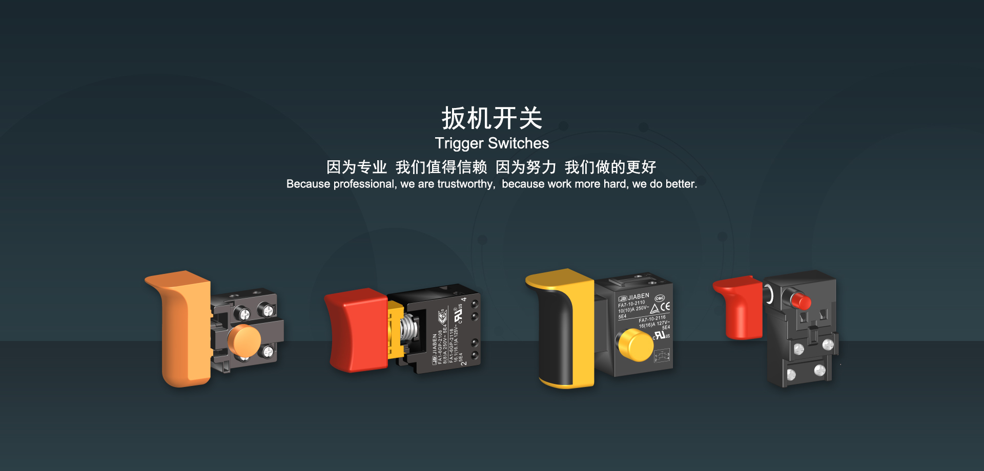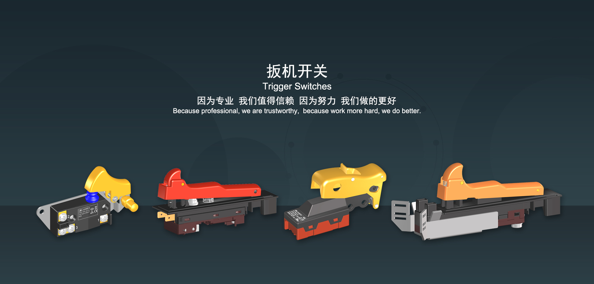 手机买球app始建于1986年,坐落于浙江省乐清市虹桥镇东电子信息产业园内,现有职工700多人,资产总额超3亿元。公司主要经营“JIABEN”牌微动开关、跷板开关、按钮开关、扳机开关、调速开关和电位器开关等各类交、直流器具开关和各类交、直流线路板模块等产品,主要应用于交、直流电动工具、电动园林工具、清洁器具、家用电器和小型机床等行业,是集产品设计、研发、制造、销售和服务于一体的国家高新技术企业。JIABEN was founded in 1986, located in East Electronic Information Industry Park, Hongqiao Town, Yueqing City, Zhejiang Proviance, existing staff more than 700 peoples, more than 300 million RMB worth of assets. Company is mainly engaged in "JIABEN" brand Micro Switch, Rocker Switch, Push-button Switch, Trigger Switch, Speed Regulating Switch, Potentiometer Switch and other kinds of appliance switch and all kinds of AC or DC circuit board module, such as more than 100 series, 8000 kinds of models of products, mainly used in AC or DC Power-tools, Power Gardening Tools, Cleaning Appliances, Household Appliances and Small Machine Tool and other industries, is the collection product design, research and development, manufacturing, sales and service in one of the national high and new technology enterprise.