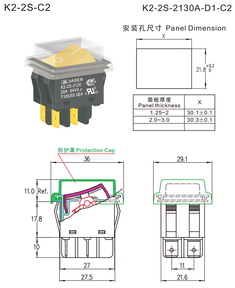 K2-2S series are one standard type rocker switches, optional many kinds of types, optional with Protection Cap for dustproof and waterproof, or with Inner Protection Structure for dustproof and waterproof, specially for used in DC high rated power tools and gardening tools such as: Cordless Bench Grinders, Cordless Electric Lawnmowers, Cordless Electric High Pressure Washers, etc. Also for used in AC or DC Electric Welder, etc.