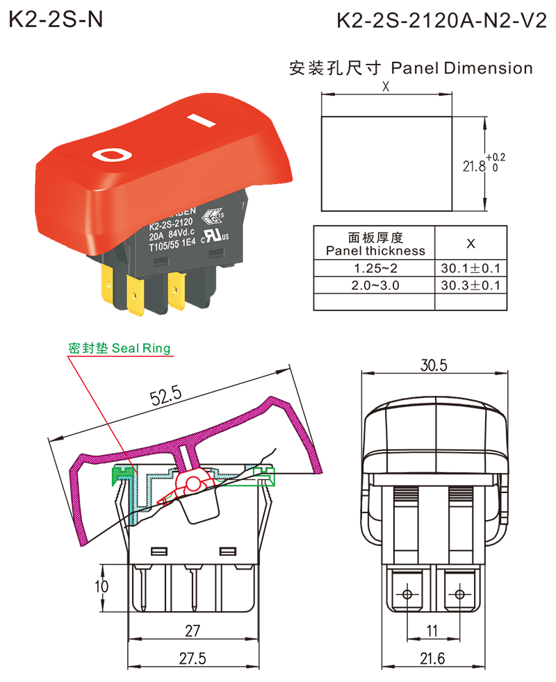 K2-2S系列是一款标准型的跷板开关,也通称船型开关、波形开关等,有多重款式可以选择,可选带防护罩实现防尘防水,也有内部防尘结构来实现防尘防水,特别适用于各类直流大电流的电动工具、园林工具,如:充电式台剧、充电式电动割草机、充电式高压清洗机等,也可以适用于交流和直流电焊机等。