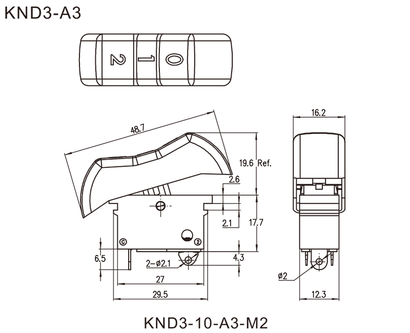 ◆KND3系列是一款通用型的跷板开关,也通称船型开关、波形开关等,一般应用于各类电吹风、热风枪等。