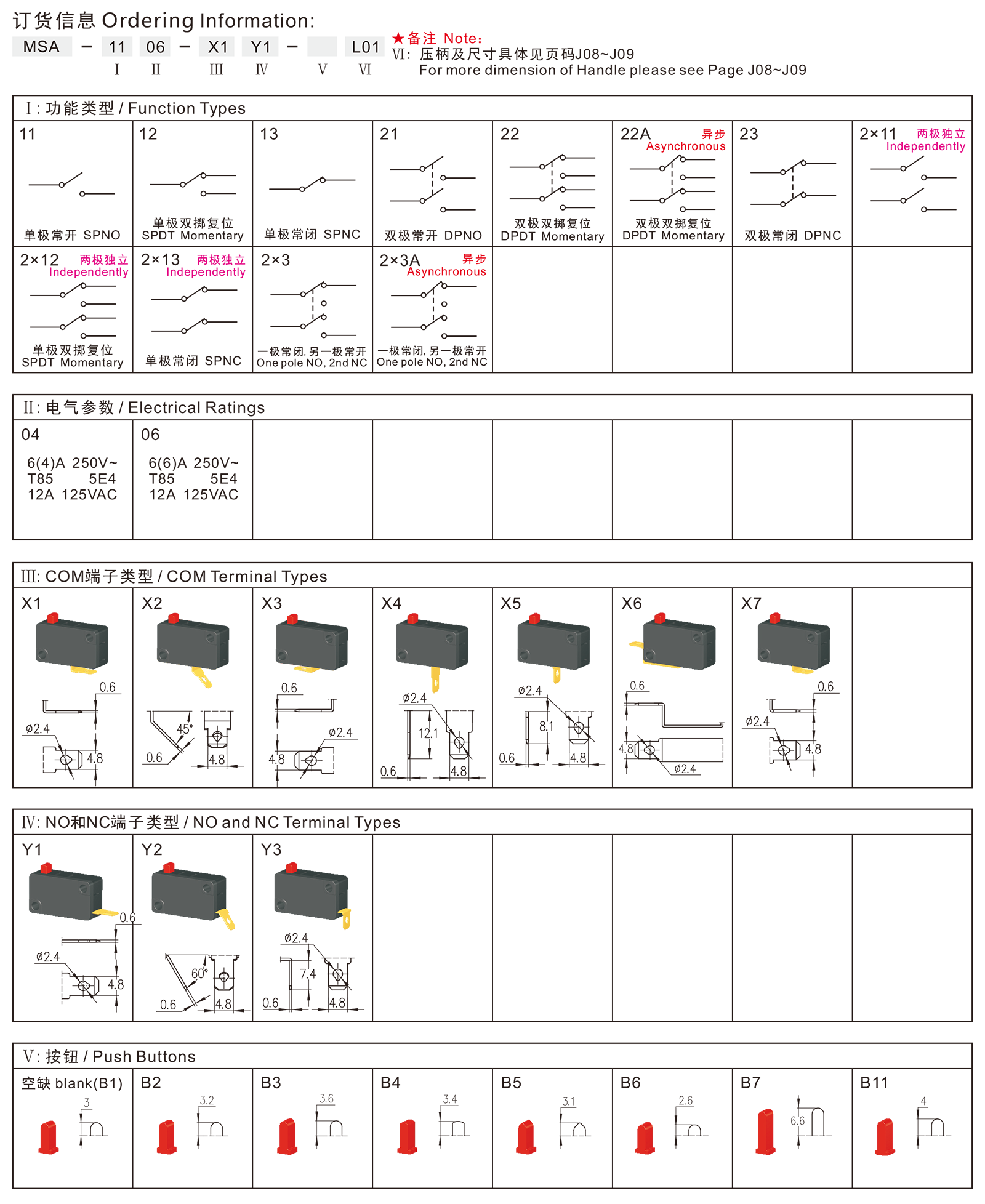 ◆MSA(DA7-6/1, DA7-6/2)系列是一款标准型的微动开关,用途极广,适用于各类小功率交流和直流电动工具和园林工具,如:电动钉枪、电动喷枪、打草机、修枝机(也叫绿篱机、篱笆剪)等。