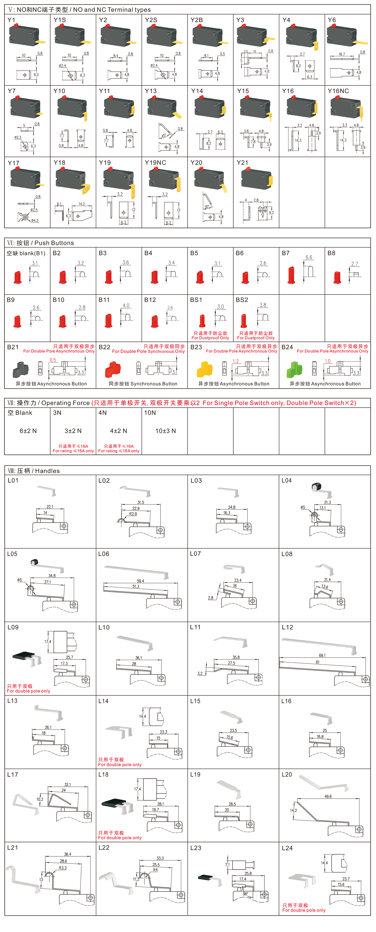 →一极常开,另一极常闭 One Pole NO, the Other NC