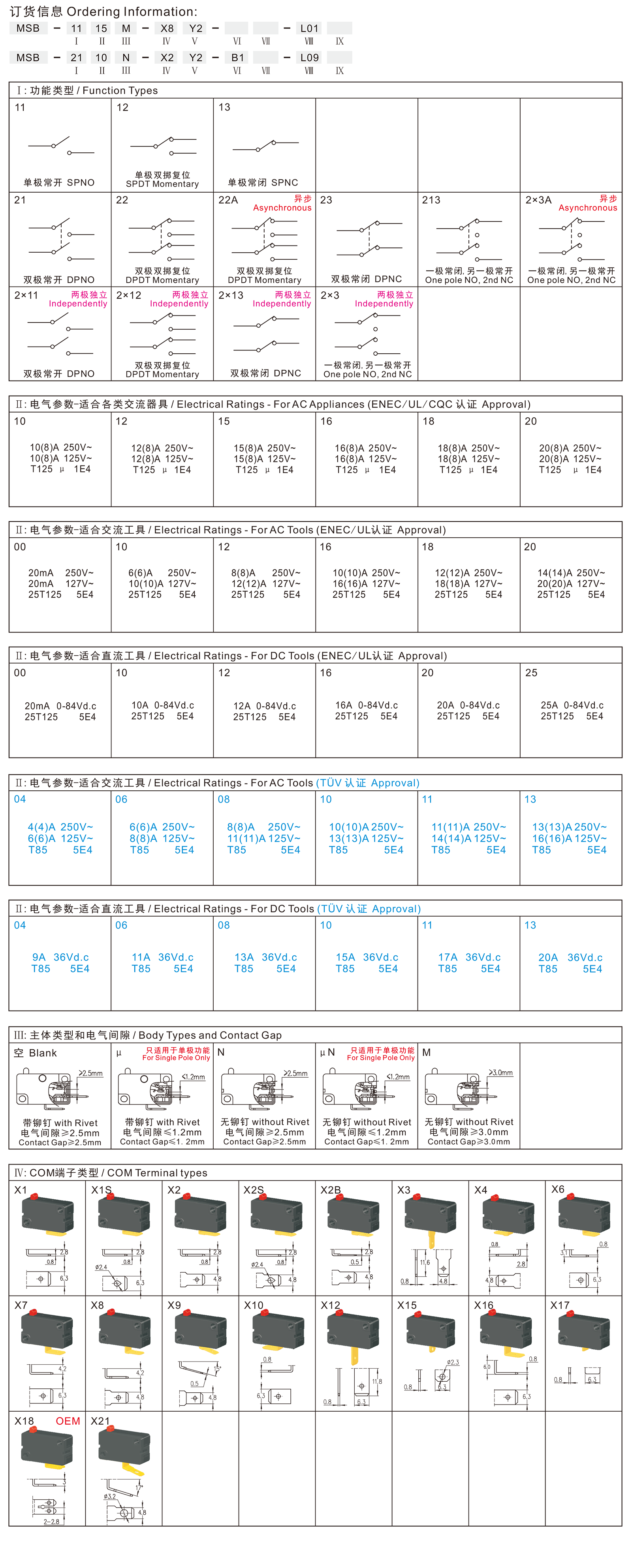 →一极常开,另一极常闭常开 One Pole NO, the Other CO