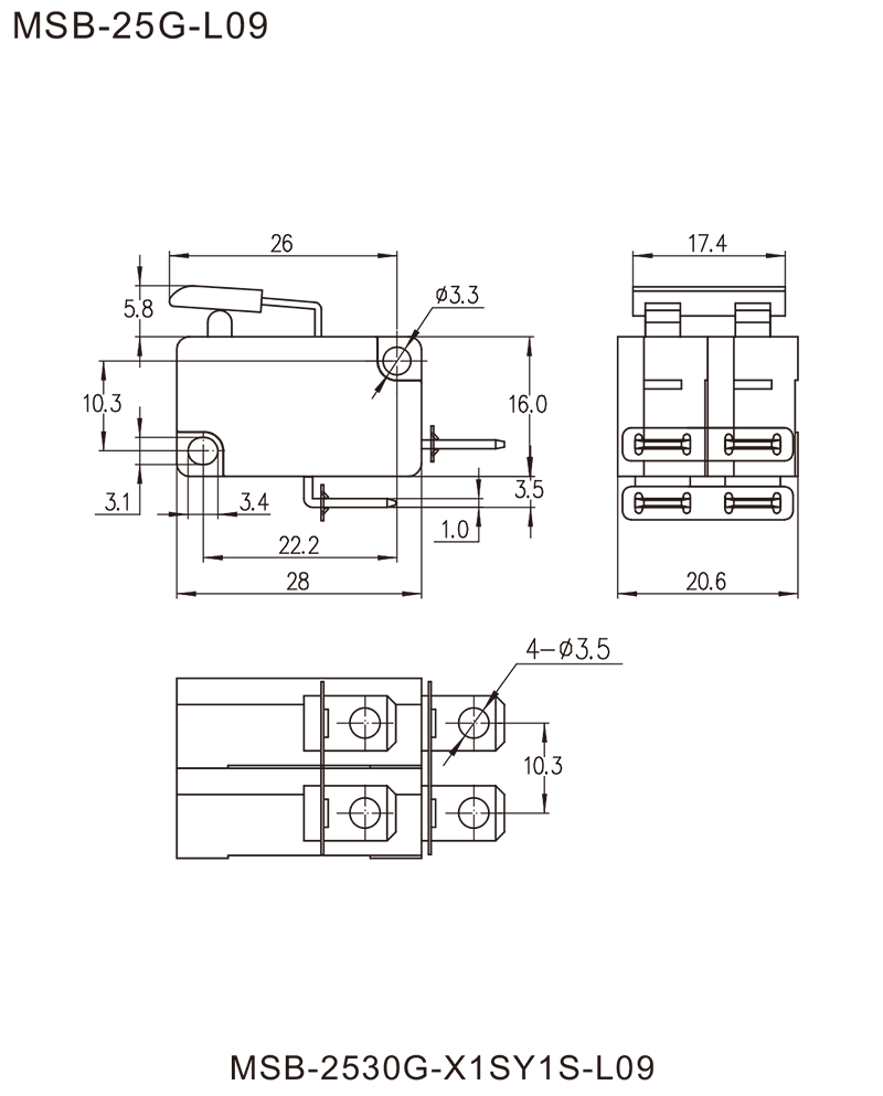 ◆MSB-G系列是一款标准型的微动开关,是MSB系列的高额定值版,有微断开和≥3.0mm两种触点间隙可以选择,可选防尘款内部加装密封圈,特别适用于各类高电压大电流的直流电动工具和园林工具,如:42Vd.c及以上直流斜切锯、42Vd.c及以上直流高压清洗机、42Vd.c及以上直流打草机、42Vd.c及以上直流修枝剪、42Vd.c及以上直流吹风机、42Vd.c以上直流电链锯等等。