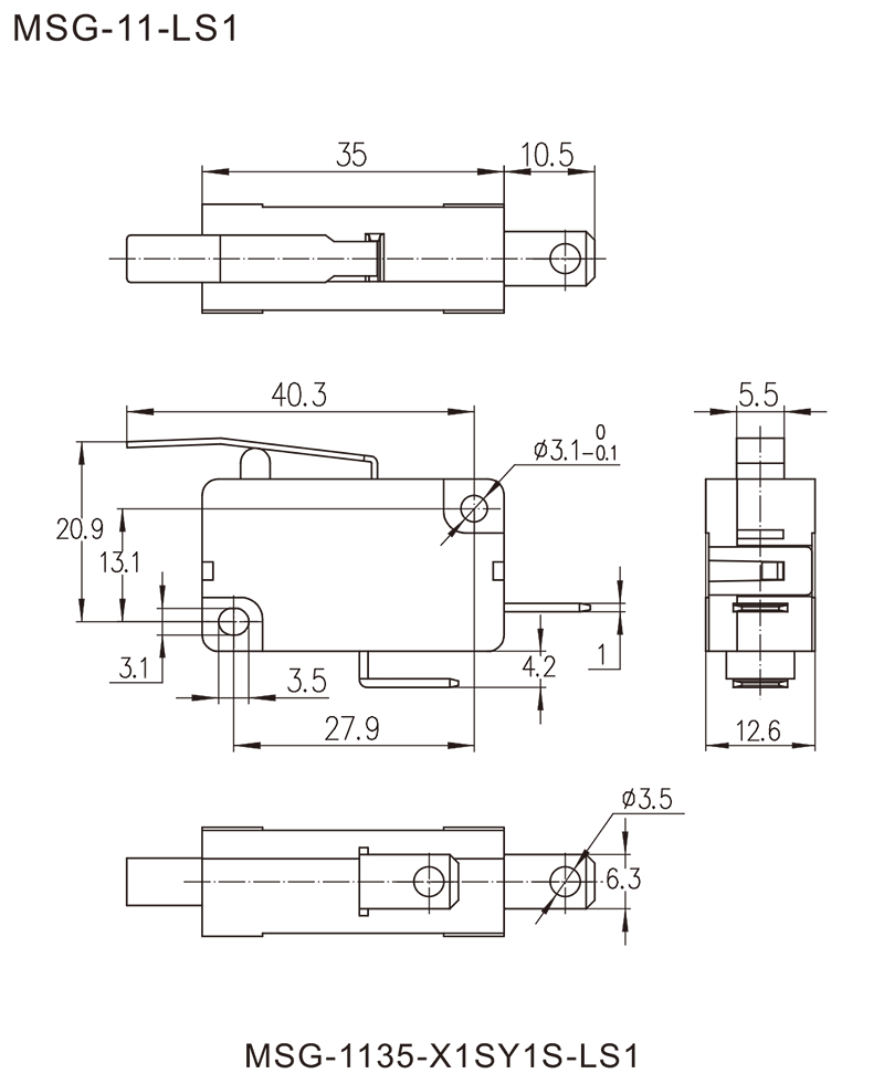 MSG series (Dustproof) High Rated Micro Switch (Leaf Spring Type)