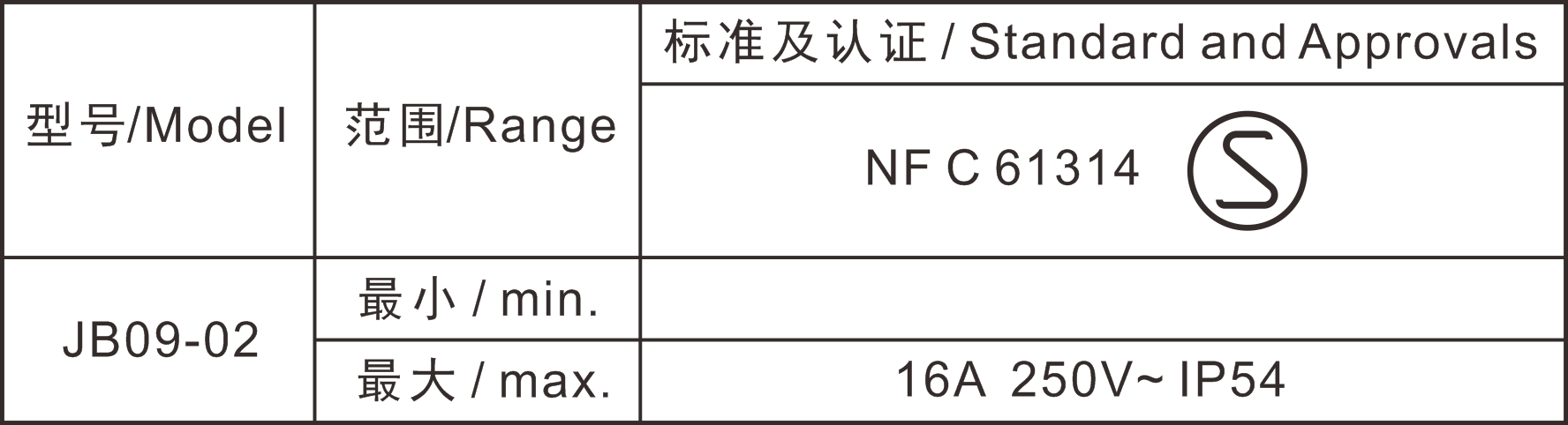 →最大电流 Max. current16A