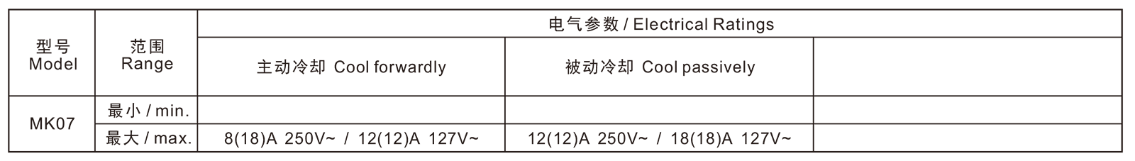 →最大电流Max. current at 250V12A