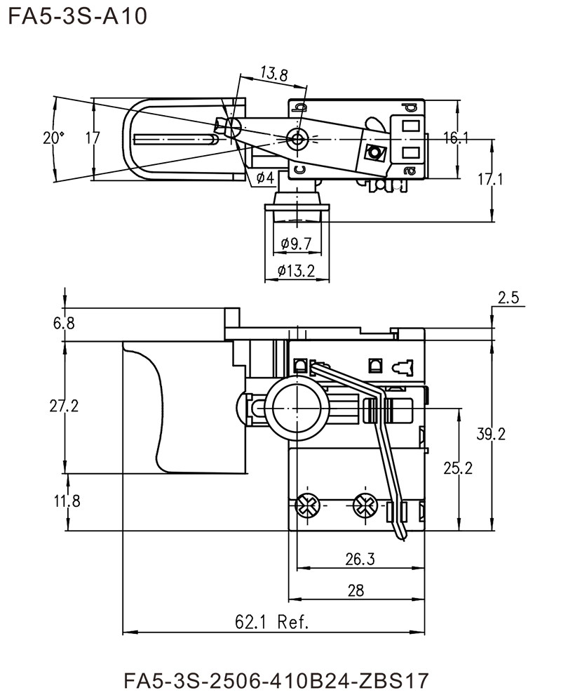 FA5-3S/FA5-6S series are one general type variable speed trigger switches with by-pass contact, specially FA5-6S is high rated type, integrated dustproof, for popular used in portable power-tools such as: 6mm Drills, 10mm Drills, Impact Drills, Impact Screw Drivers, Rotary Hammers, Jig Saws, Electric Mixers, Orbit Sanders, etc. Also used for Foot switch of Hanging Carving Machine.