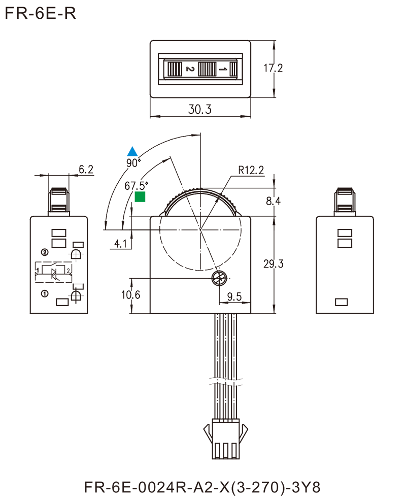 ■可选转盘一档印字与壳体上表面成90°