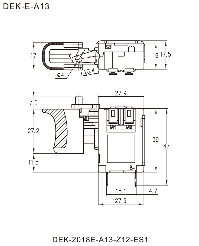 DEK系列是一款通用型的直流扳机调速开关,集成防尘机械刹车接点,内部带换向结构,应用于各类直流充电式手持电动工具,如:充电式电钻、充电式电锤、充电式螺丝起子、充电式冲击扳手等.