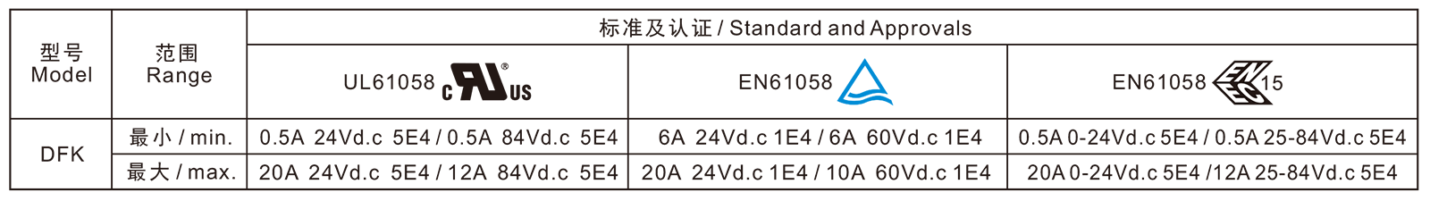 电气参数和认证 Electric Rating and Certification