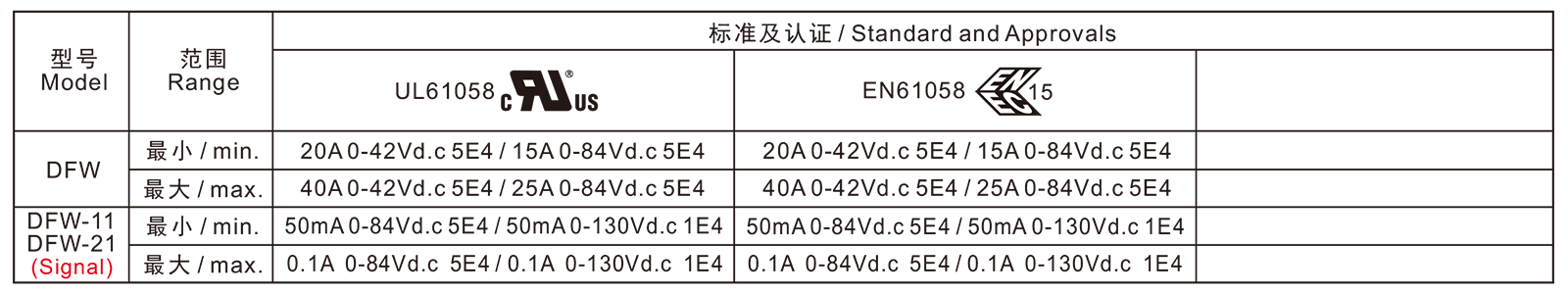 电气参数和认证 Electric Rating and Certification