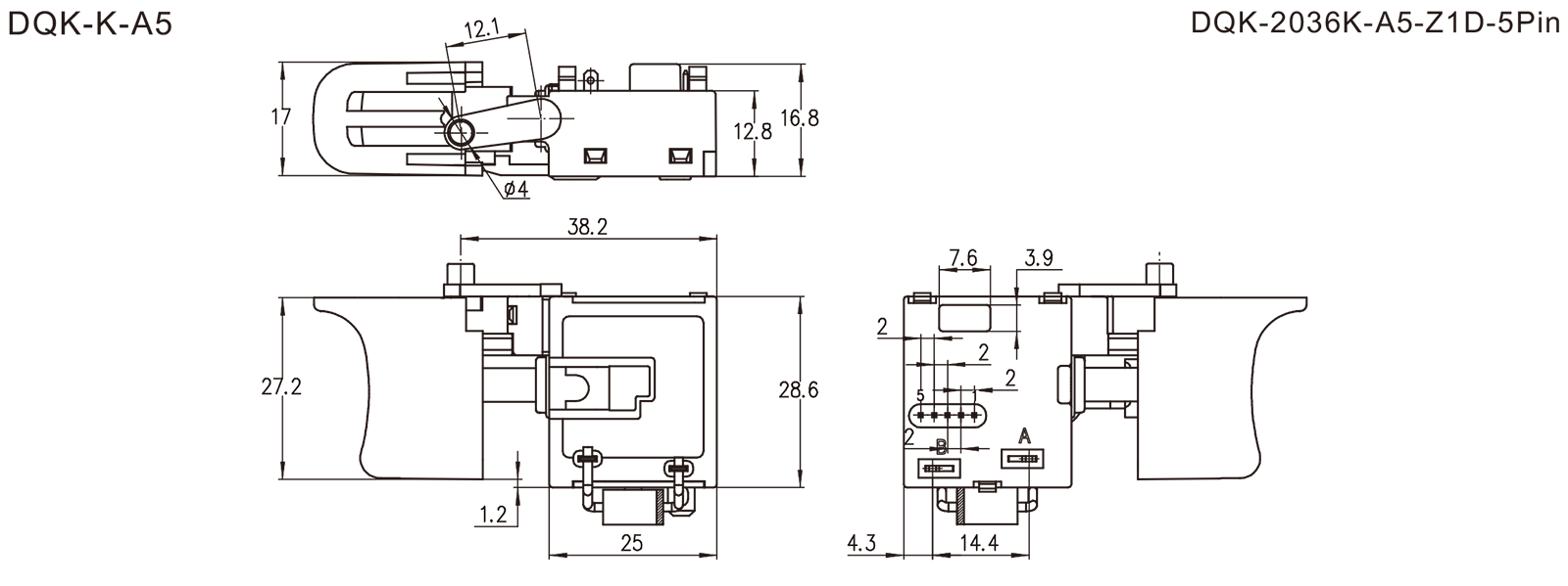 DQK系列是一款专用型的直流扳机开关,集成防尘功能,是特别为直流无刷充电式电动工具设计的,可适用于:无刷充电式电钻、无刷充电式电锤、无刷充电式螺丝起子、无刷充电式冲击扳手等。特殊设计的外形可以和线路板直接连接,而不需要外接导线。