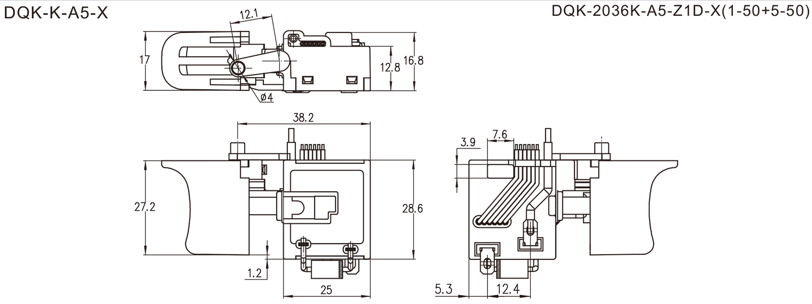 DQK series are special type DC trigger switches, integrated dustproof, designed specially for used in Brushless DC power-tools such as: Brushless Cordless Drills, Brushless Cordless Screw Drivers,Brushless Cordless Impact Wrenches, etc. With special design for assembly with PCB, needn't any wires.