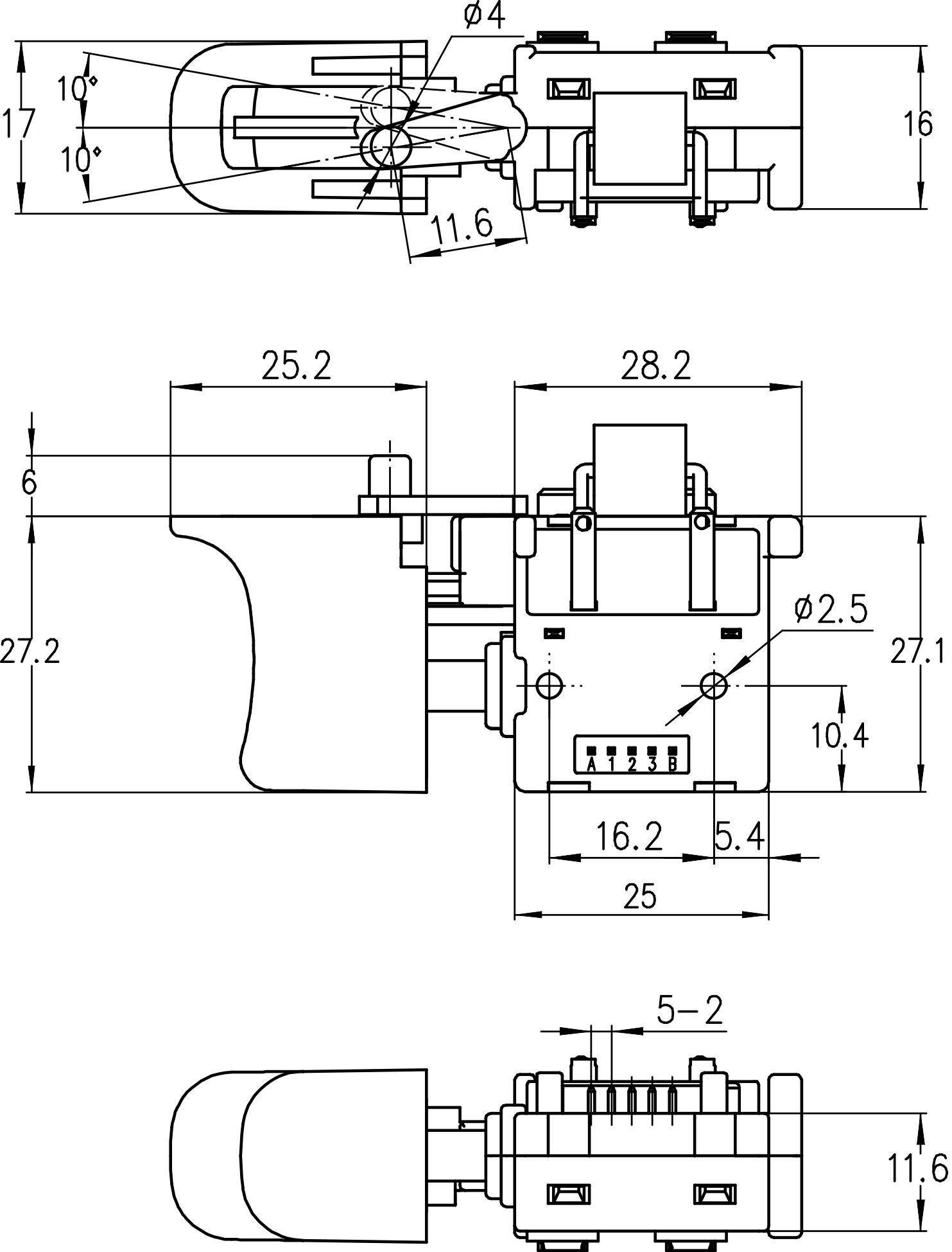 ◆DSB series are one special type DC signal trigger switches, integrated dustproof and me chanical brake contact, specially for used in DC power-tools such as: Cordless Drills, Cordless Screw Drivers, Cordless Impact Wrenches, etc. With special design for assembly with PCB, needn't any wires.