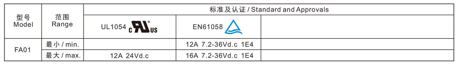 电气参数和认证 Electric Rating and Certification