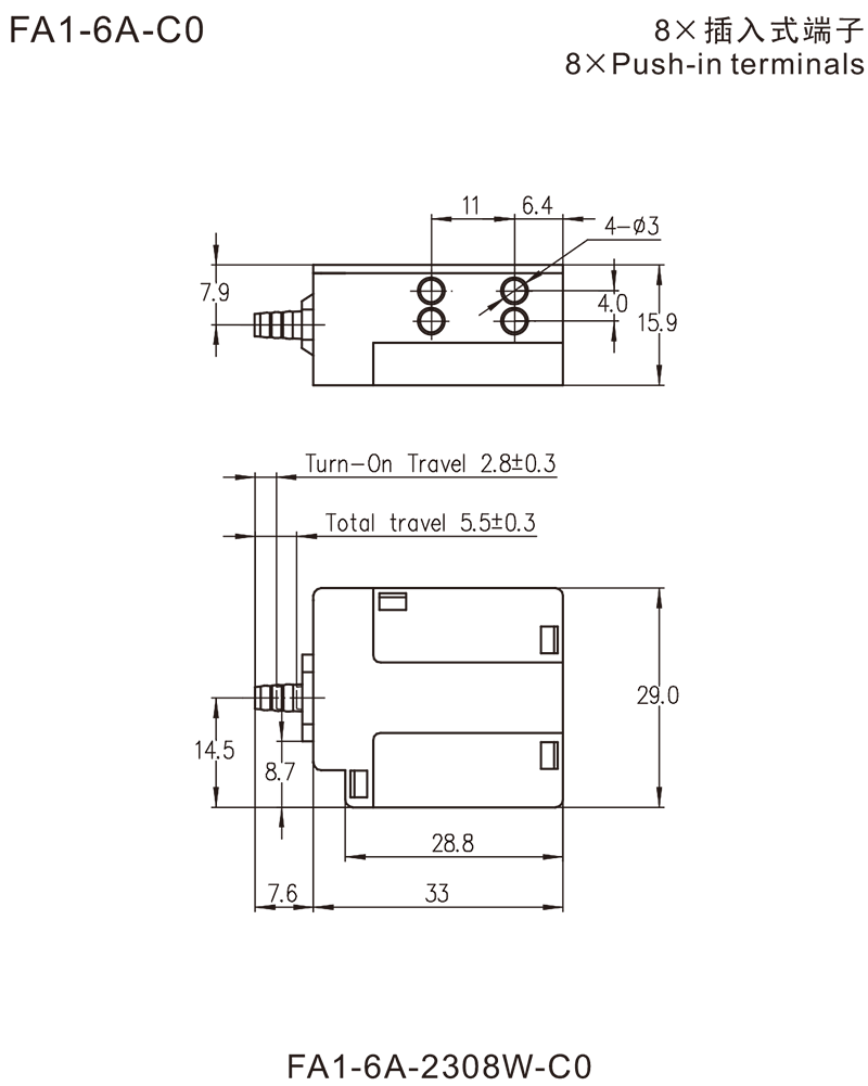 →2×接线柱端子 Pillar terminals φ=2.6mm or 2.8mm