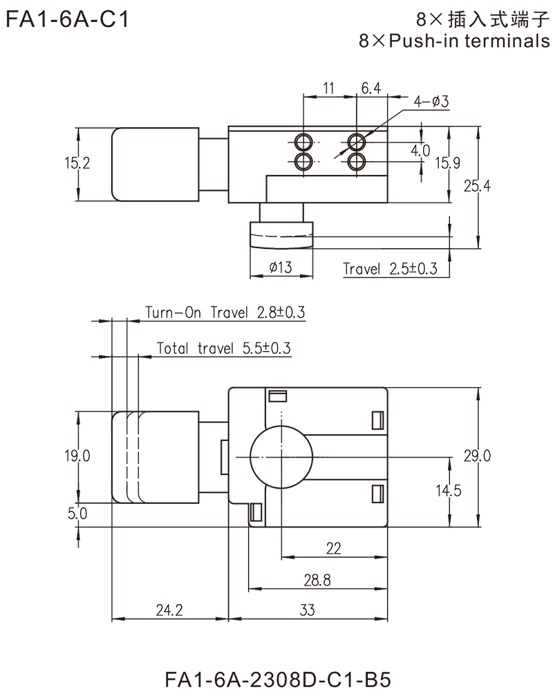 →4×插入式端子可插入沾锡导线、带插片端子导线或铜包头导线