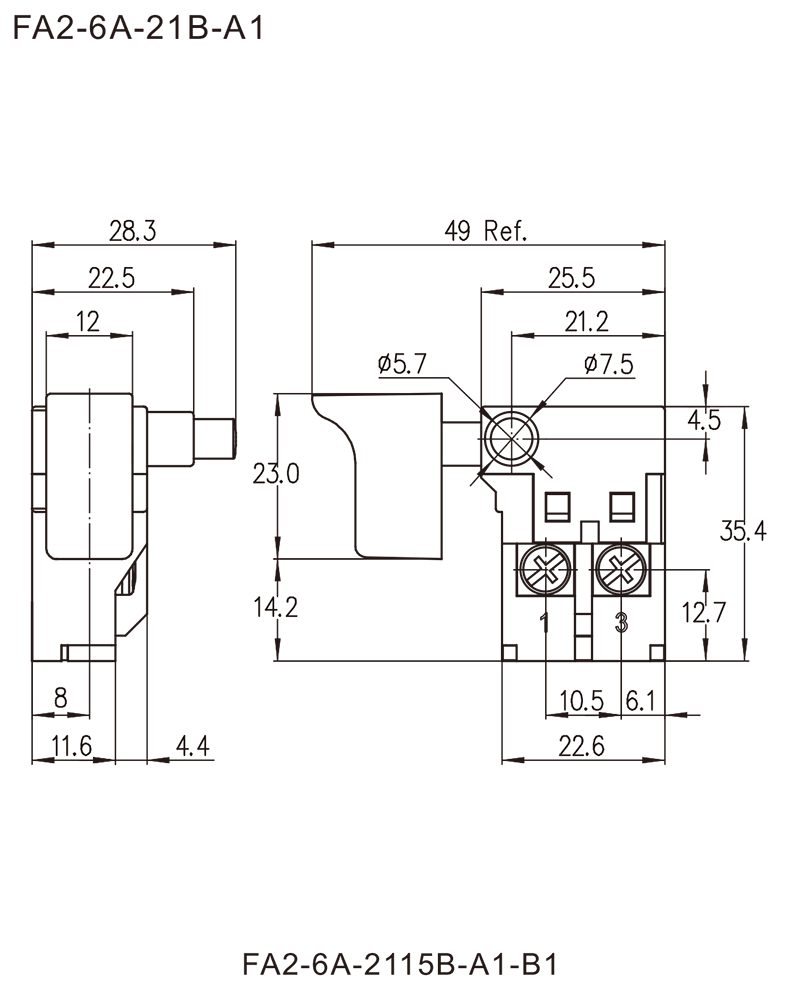 FA2-6A系列是一款通用型的扳机开关,集成防尘功能,广泛应用于各类手持式电动工具,如:电钻、云石机、电圆锯、电木铣、砂带机,砂光机、电刨等。