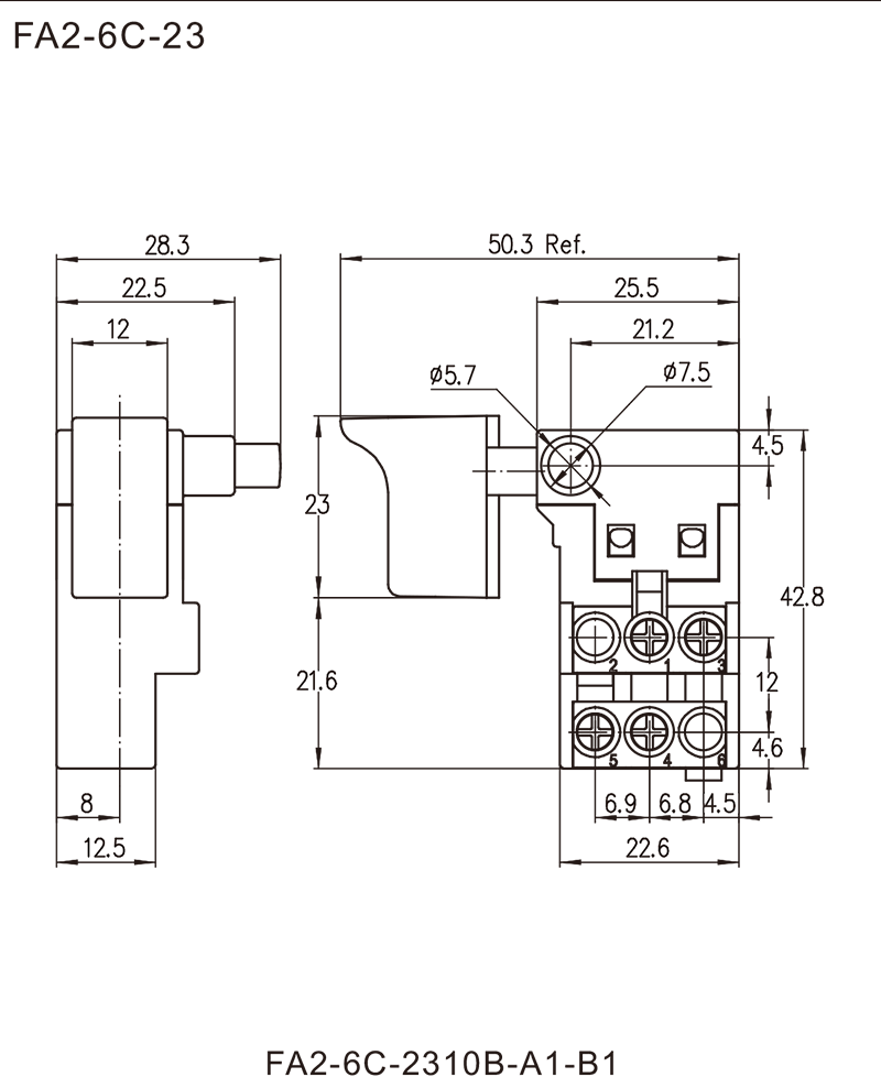 FA2-6C series are one general type trigger switch, integrated dustproof, commonly for used in power tools such as Cut-off Machines, Miter Saws, Marble Cutters, Circular Saws, Electric Hammers, Electric Routers, Belt Sanders, Electric Planers, etc.