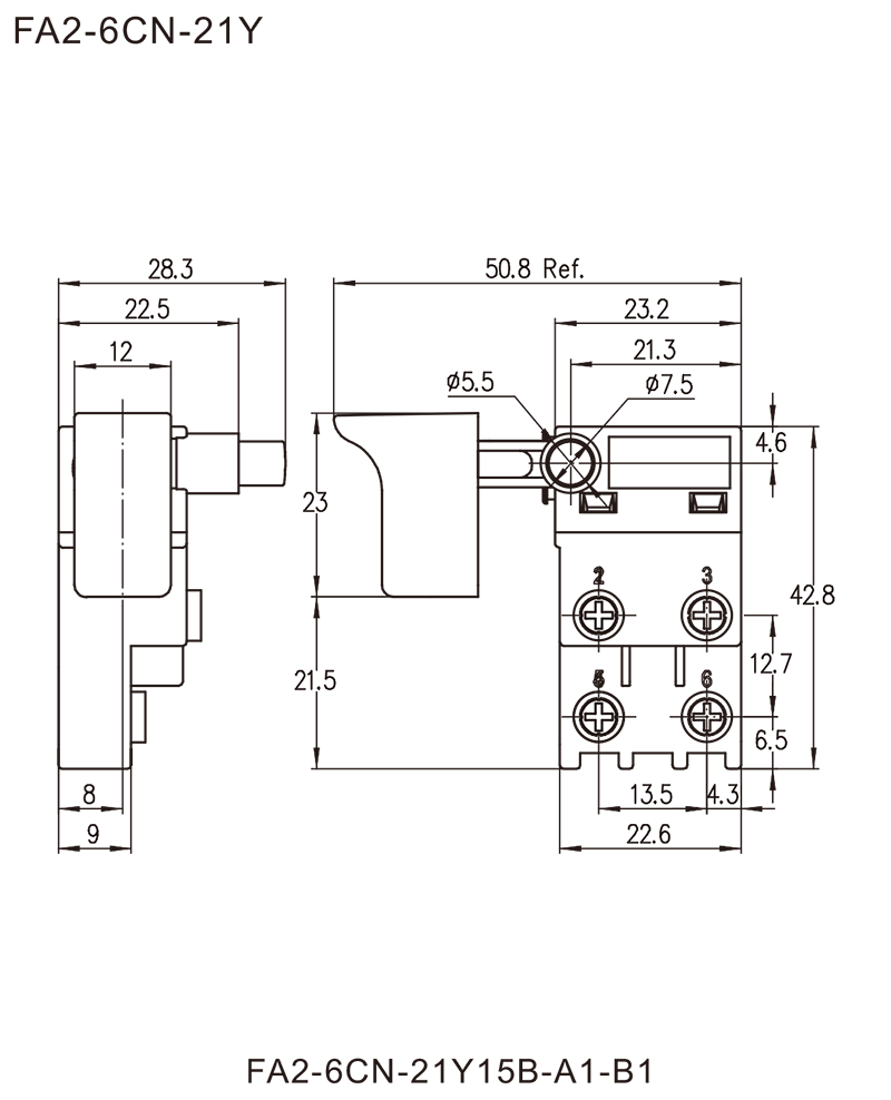 FA2-6CN series are one general type trigger switches, which is dustproof improved version of FA2-6C series, commonly for used in power tools such as Cut-off Machines, Miter Saws, Marble Cutters, Circular Saws, Electric Hammers, Electric Routers, Belt Sanders, Electric Planers, etc.