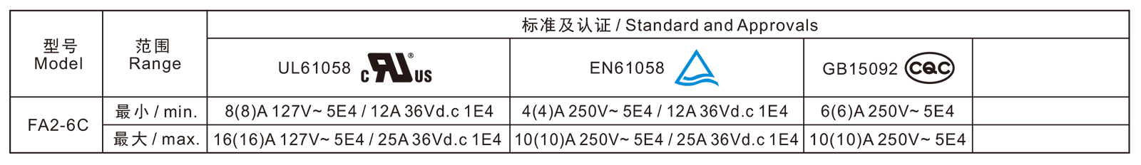 电气参数和认证 Electric Rating and Certification