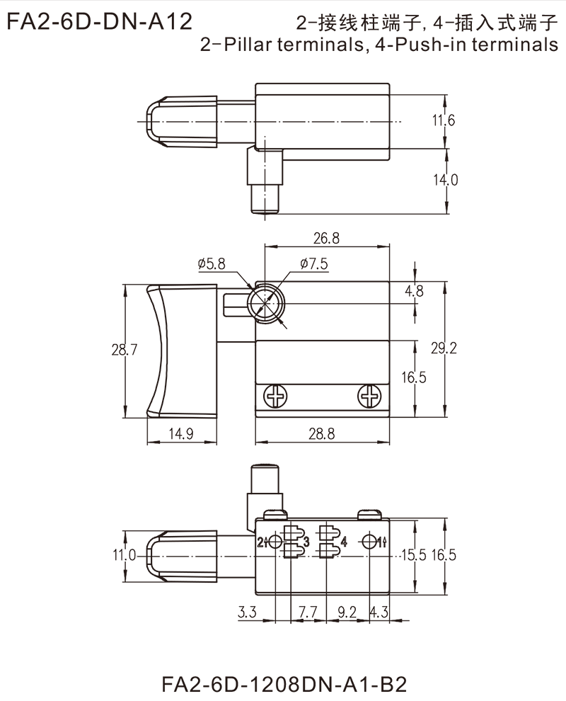 →接线柱端子 Pillar terminals φ=3mm