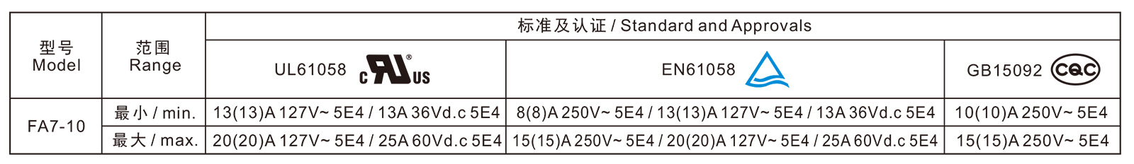 电气参数和认证 Electric Rating and Certification
