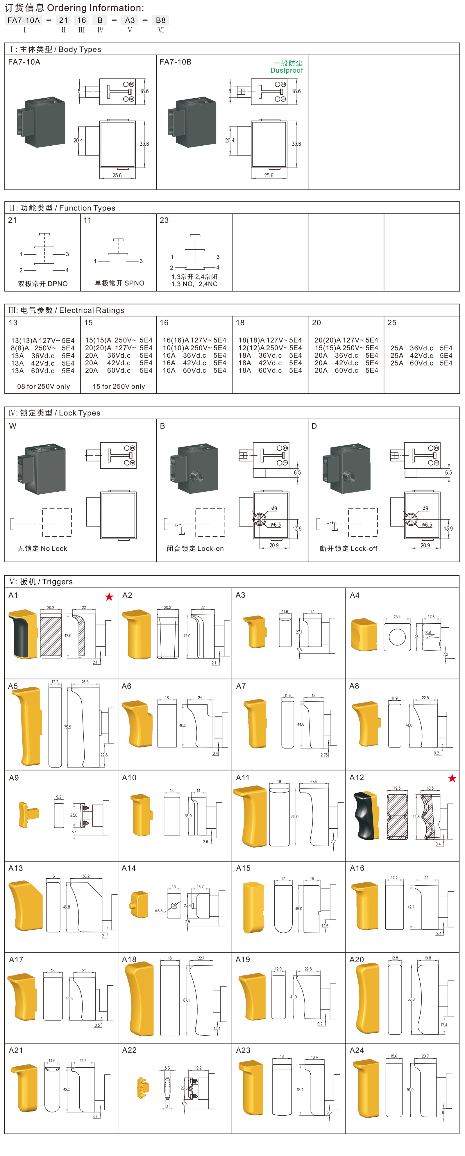 FA7-10A,FA7-10B(防尘)快速动作扳机开关