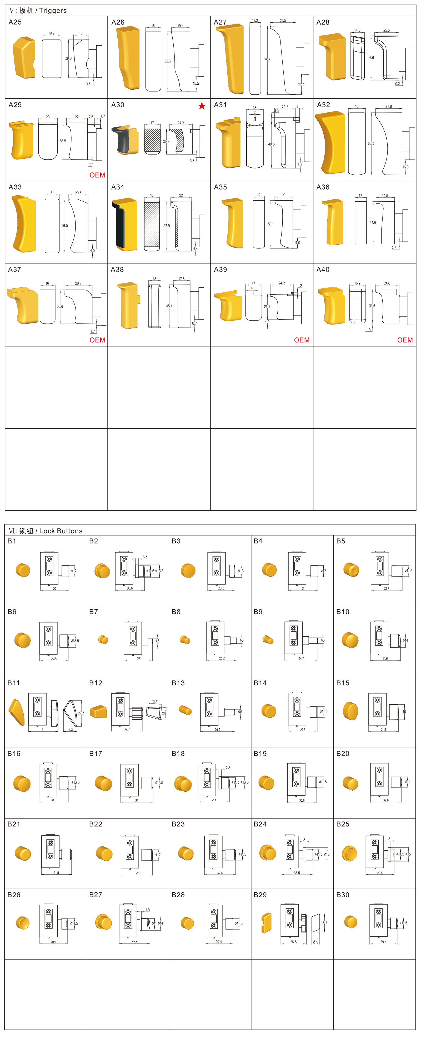 →带软胶扳机 Trigger covered with rubber (Overmolding)