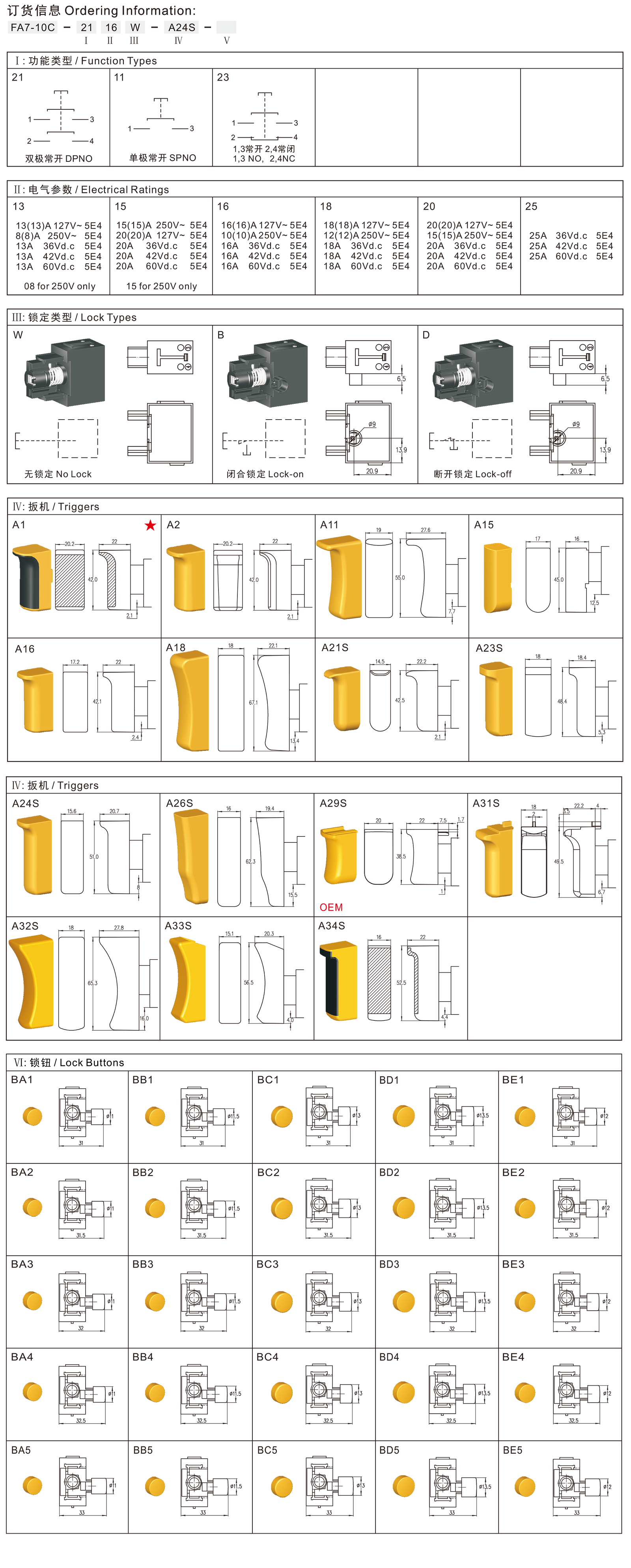 FA7-10C series are updated type of FA7-10 series, with snap-action structureintegrated high grade dustproof, for used in power-tools and gardening tools such as Circular Saws, Jig Saws, Polishers Grinders, Rotary Hammers, Demolition Hammers, Miter Saws, Cut-off Machines, etc.