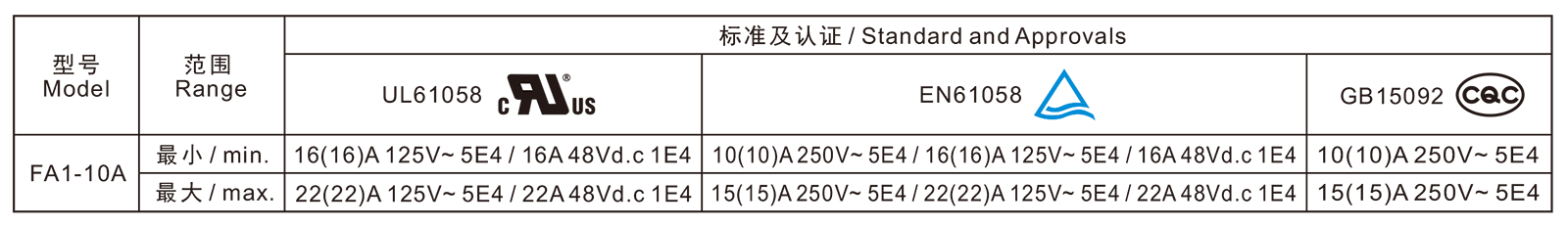 电气参数和认证 Electric Rating and Certification