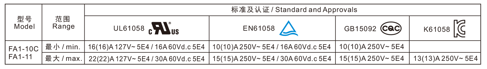 电气参数和认证 Electric Rating and Certification