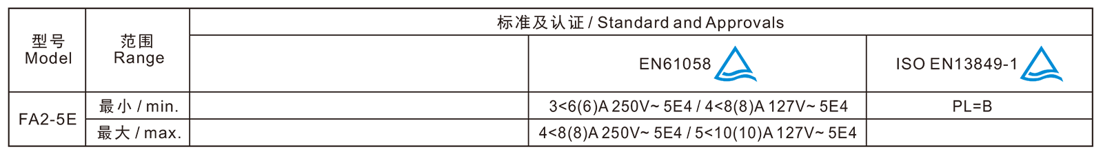 电气参数和认证 Electric Rating and Certification