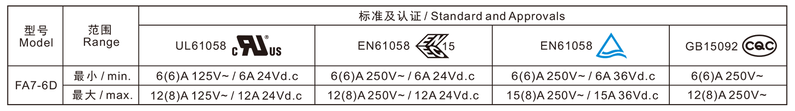 电气参数和认证 Electric Rating and Certification