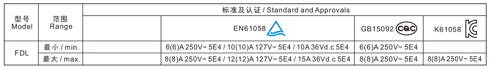 电气参数和认证 Electric Rating and Certification