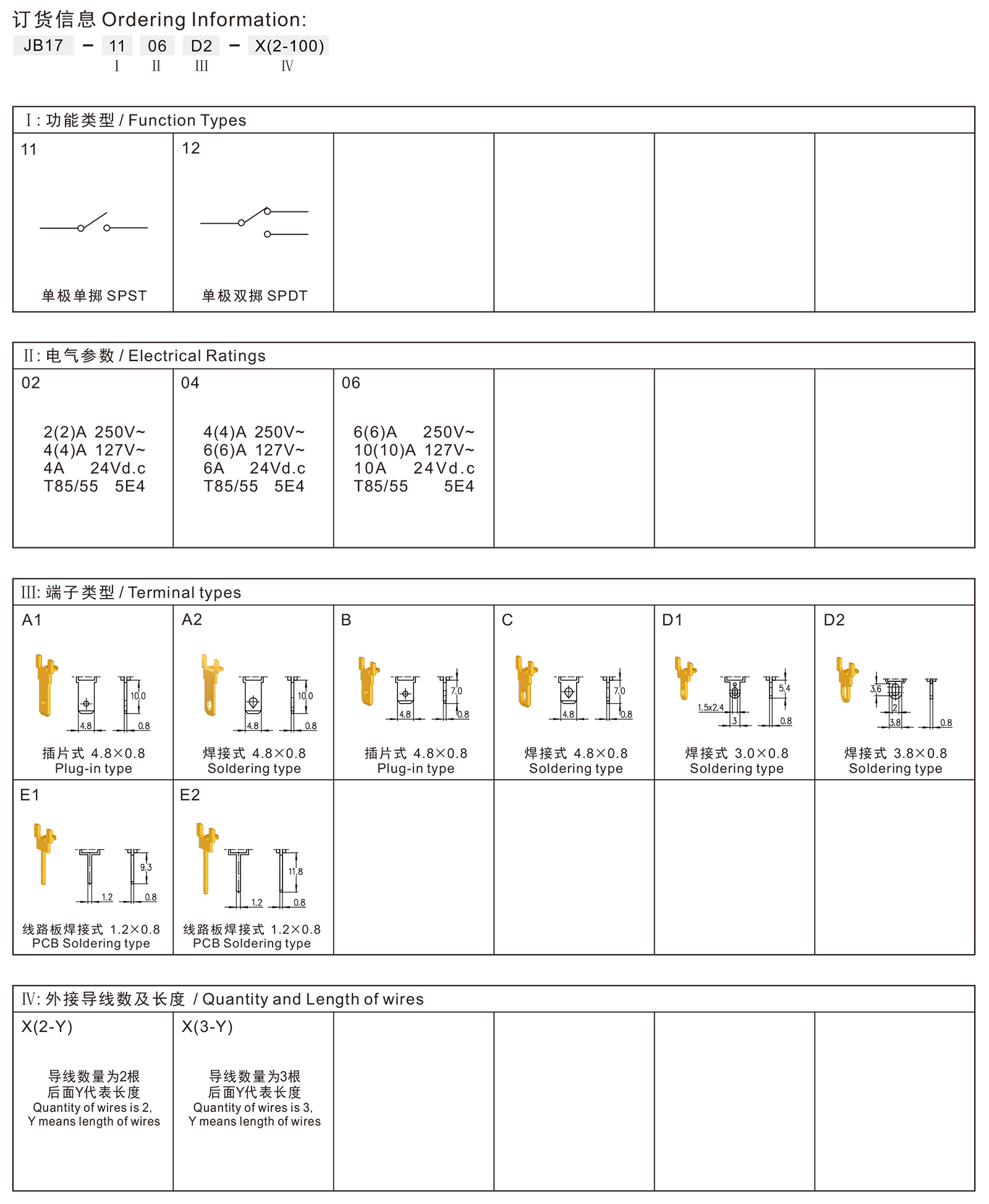 →插片端子 Plug-in terminals 4.8×0.8mm