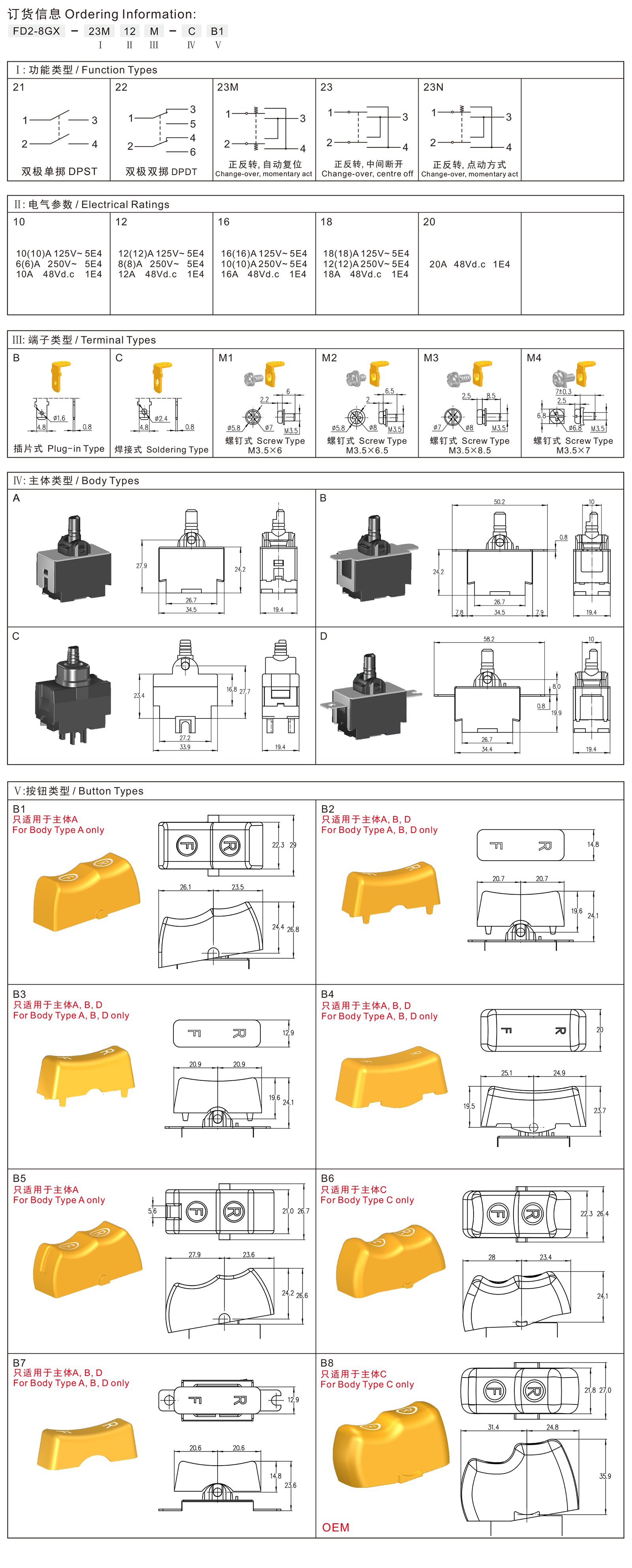 FD2-8GX series are special type Lever switches, also named Toggle switch, commonly for used in portable power-tools such as Electric Wrenches, Electric Mixers, Electric Winches, etc.