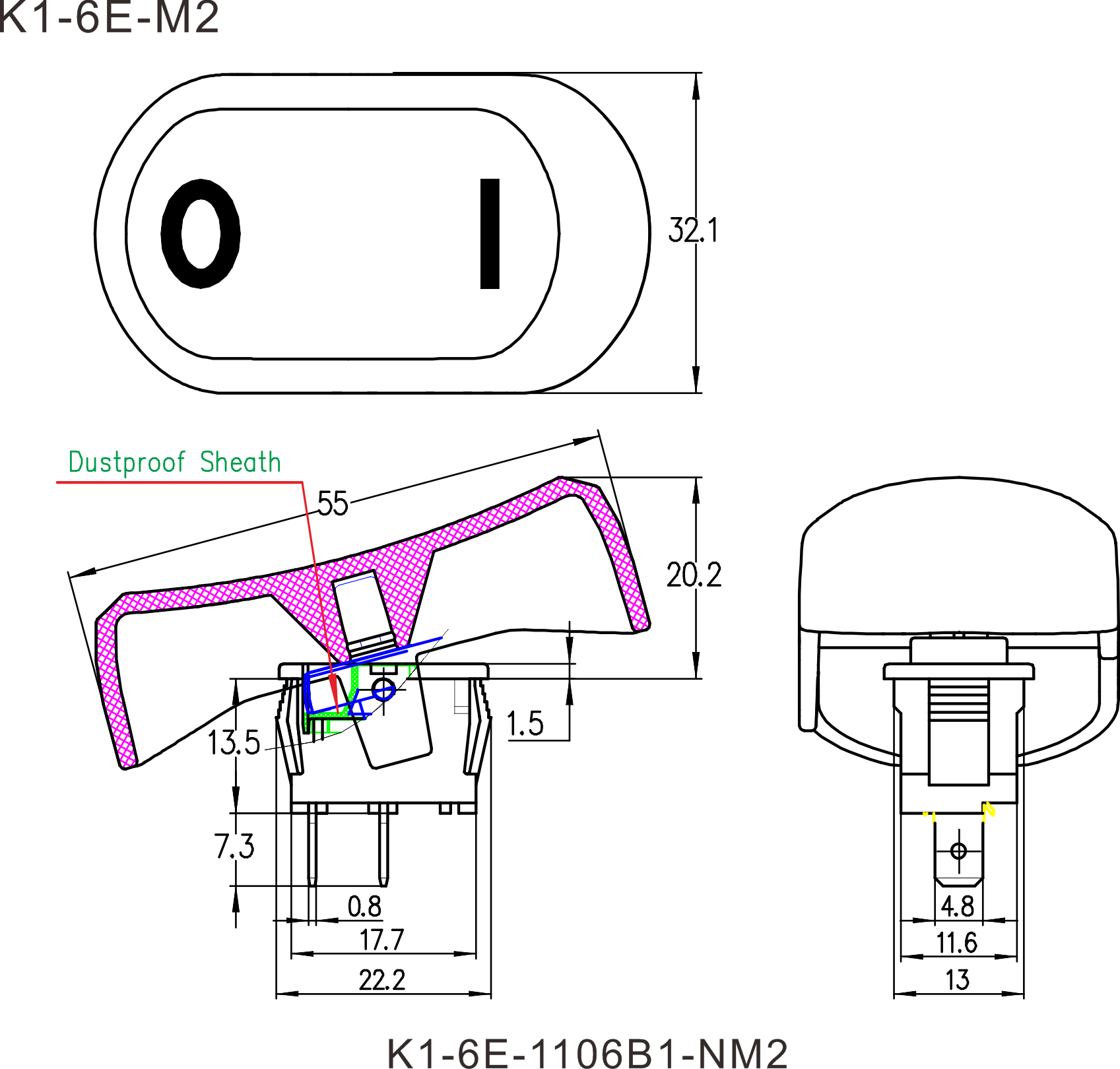 K1-6E series are one standard type rocker switch, optional with Protection Cap for dustproof and waterproof, or with inner dustproof structure, commonly for use in portable power-tools such as Hand Sanders, Die Grinders, Electric Nailers, Laser Actuators, etc. Also for used in small Home appliances and office equipments, such as Reading Lamps, Electric Fans, Printers, Game Players, Computer Power-supplys, Power Sound Box, etc.