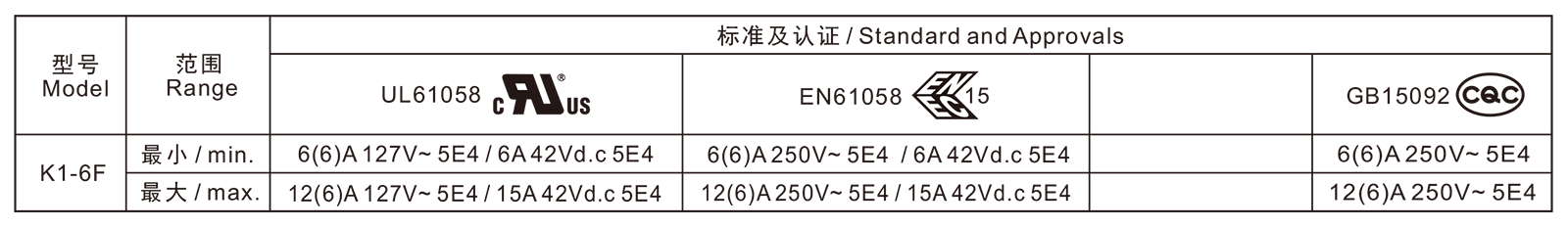 电气参数和认证 Electric Rating and Certification