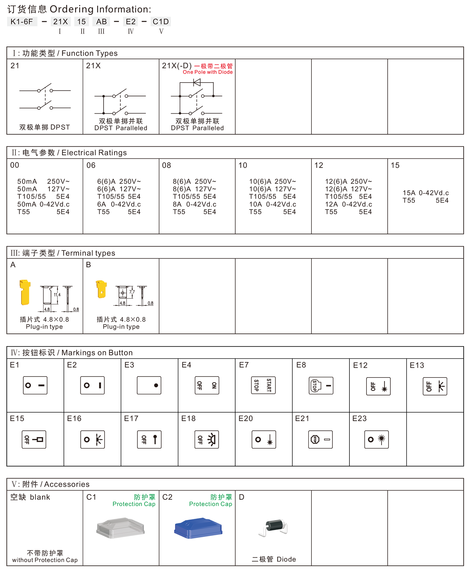 ◆K1-6F series are one standard type rocker switch, optional with Protection Cap for dustproof and waterproof, commonly for use in small Home appliances and office equipments, such as Reading Lamps Electric Fans, Printers, Game Players, Computer Power-supplys, Power Sound Box, etc. Also suitable for small portable power-tools, such as Sanders, etc.
