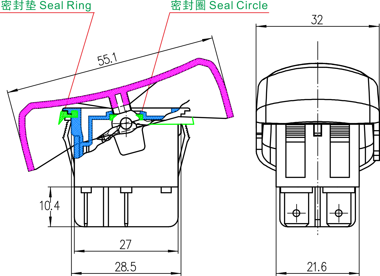 K2-2 series (Dustproof and Waterproof) Rocker Switches