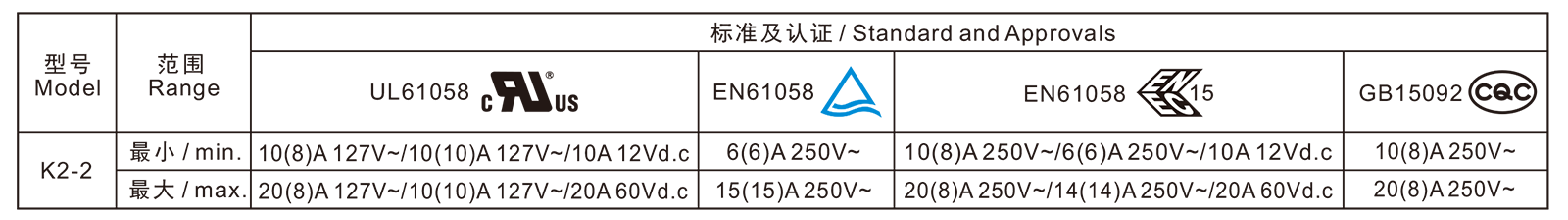 电气参数和认证 Electric Rating and Certification