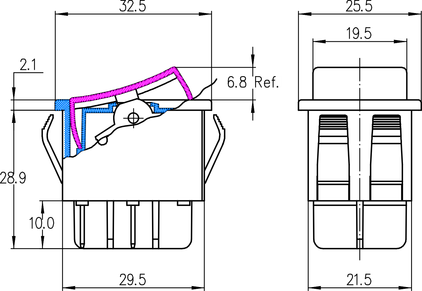 K2-2 series (Dustproof and Waterproof) Rocker Switches