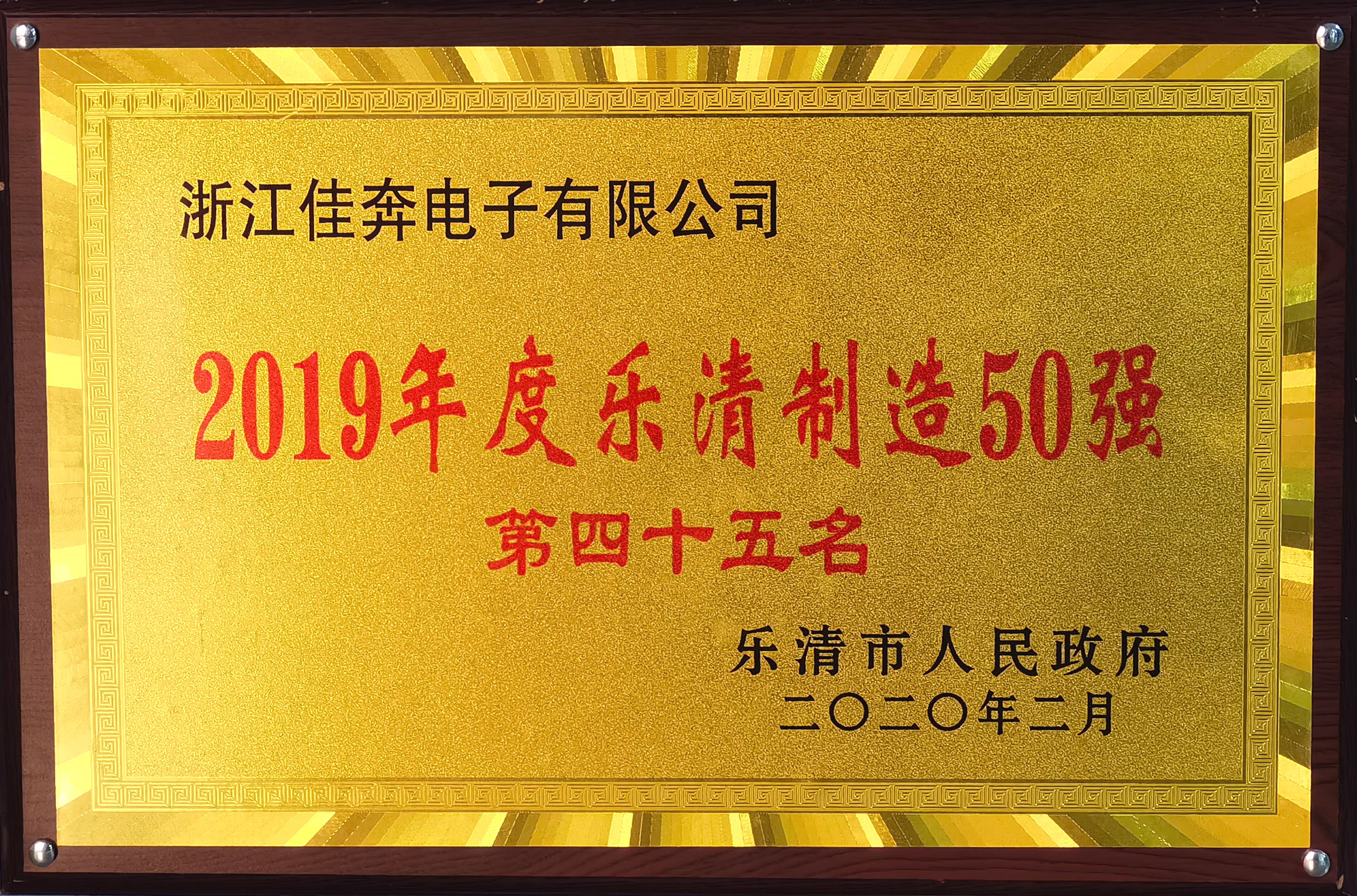 2019年度乐清制造50强第45名