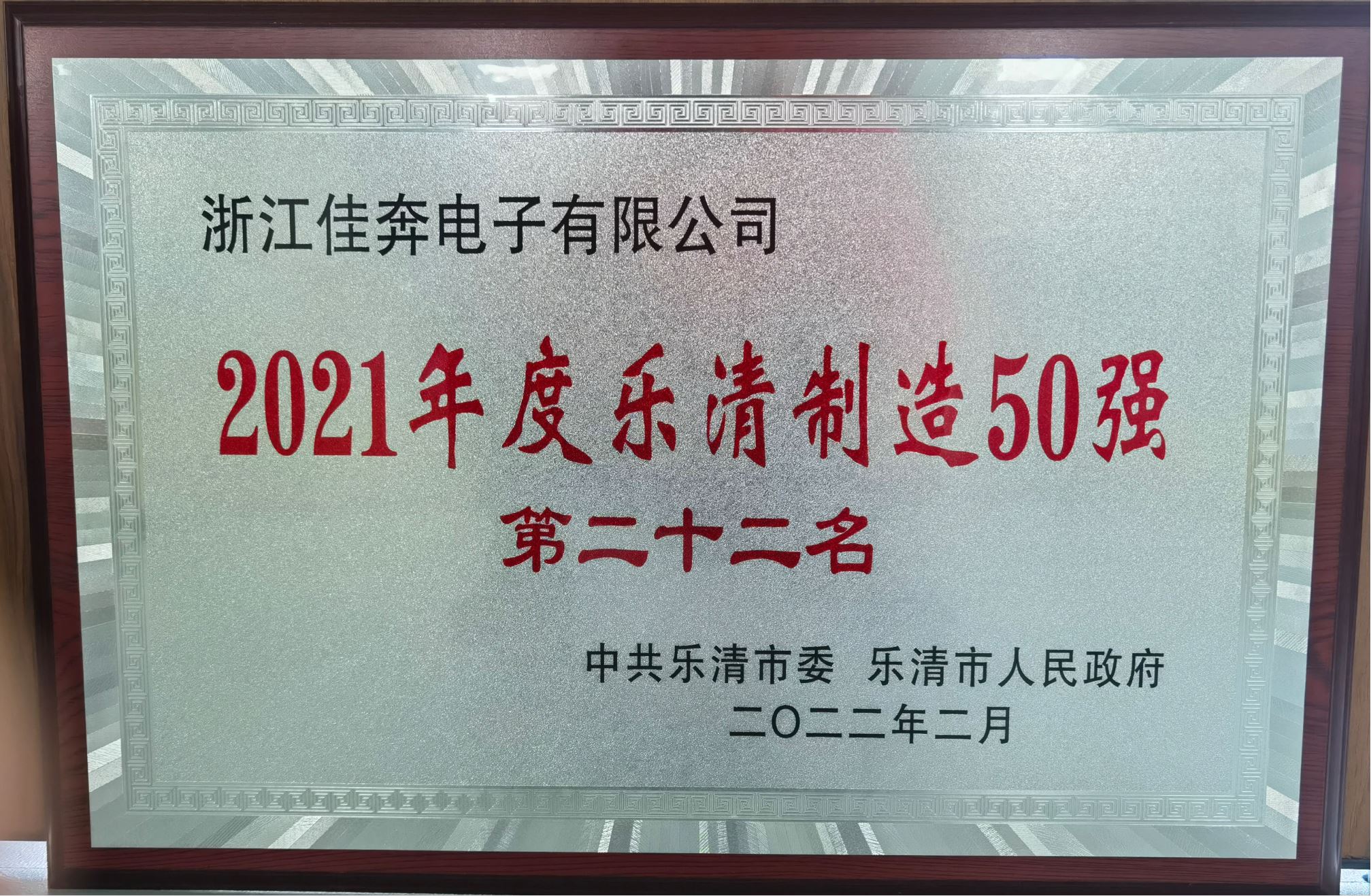 在2021年度召开的乐清市制造业高质量发展大会上,公司获得“2020年乐清制造50强第28名”荣誉奖牌,我们将再接再厉,继续努力!