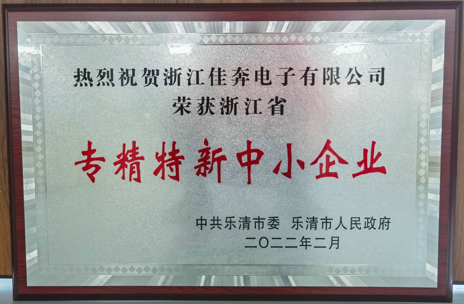 热烈祝贺公司获得“浙江省专精特性中小企业”荣誉称号!