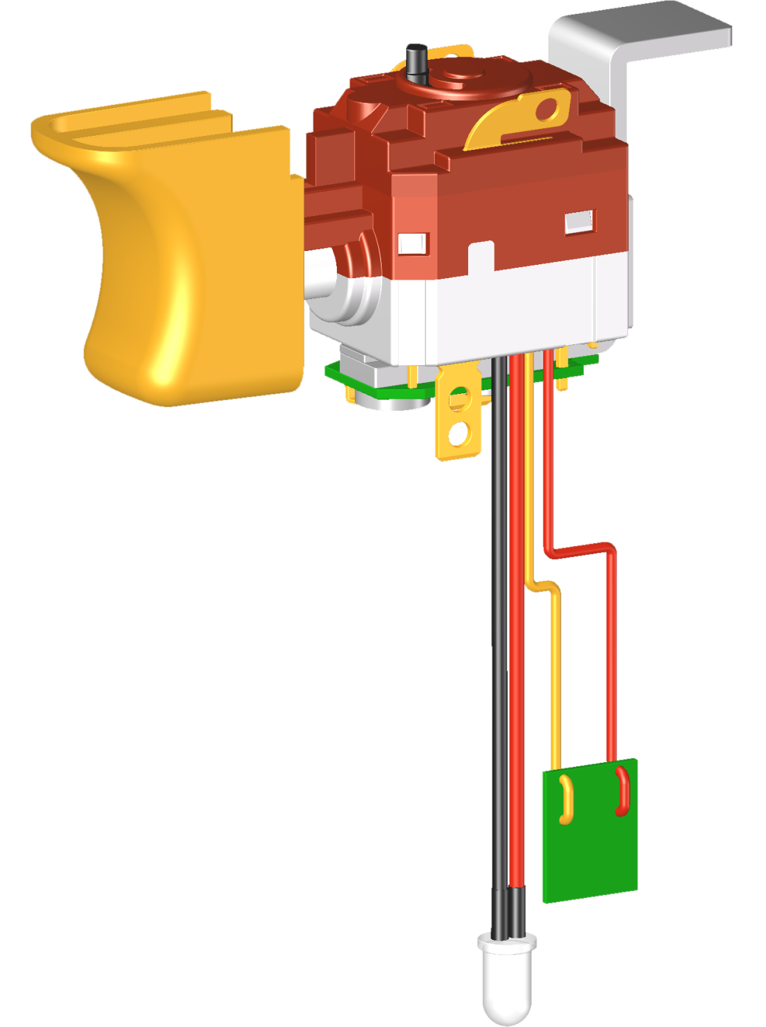 我司主要产品:微动开关、跷板开关、按钮开关、扳机开关、调速开关和电位器开关等各类交、直流器具开关和各类交、直流线路板模块,应用于交、直流电动工具、电动园林工具、清洁器具、家用电器和小型机床等行业。 Our company main products: micro switch, rocker switch, push button switch, trigger switch, speed switch and potentiometer switch and other kinds of a